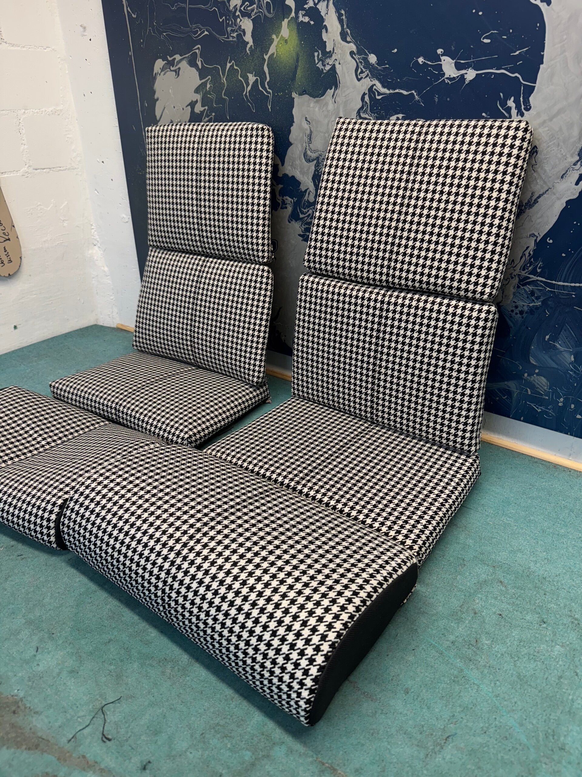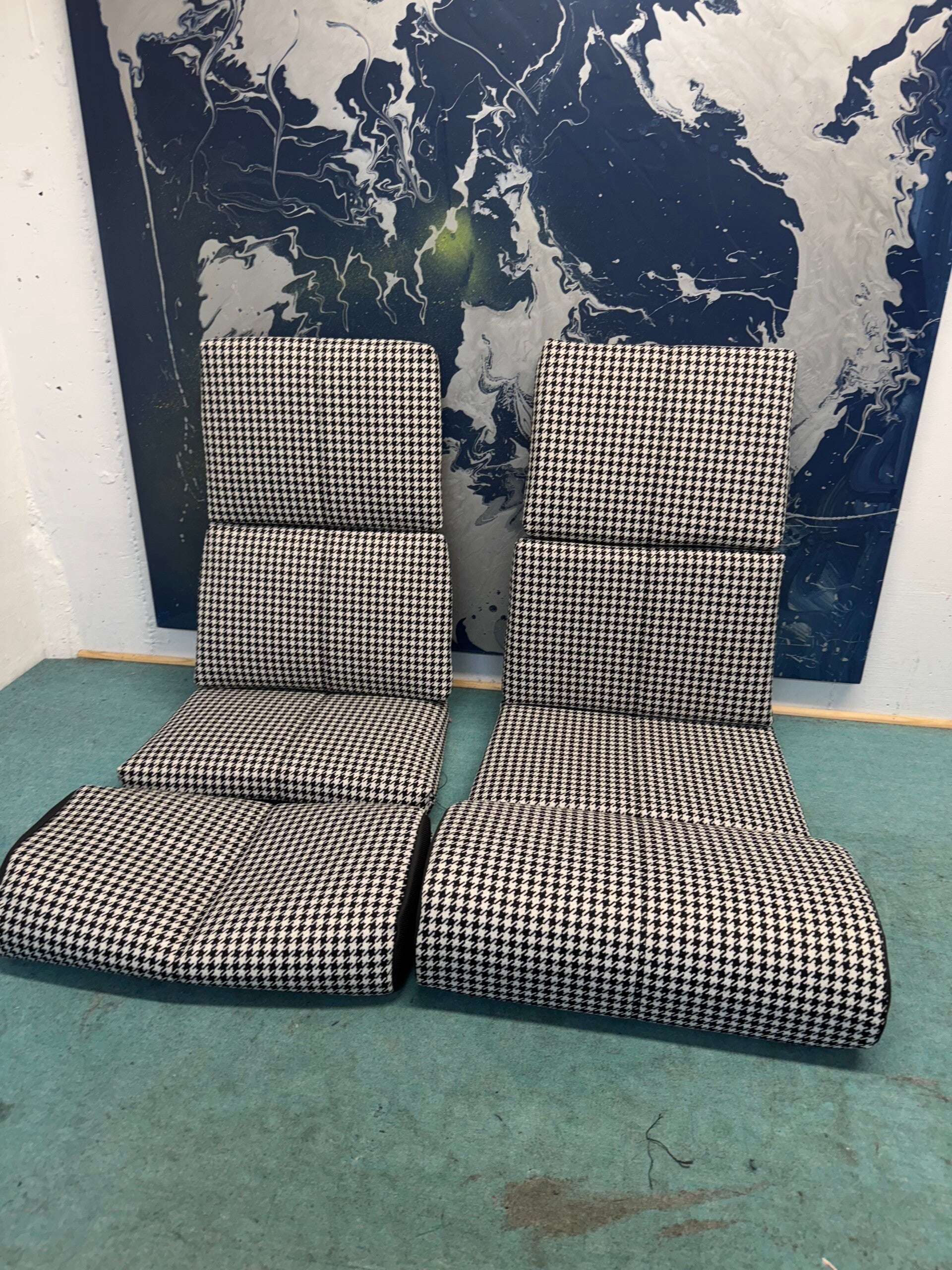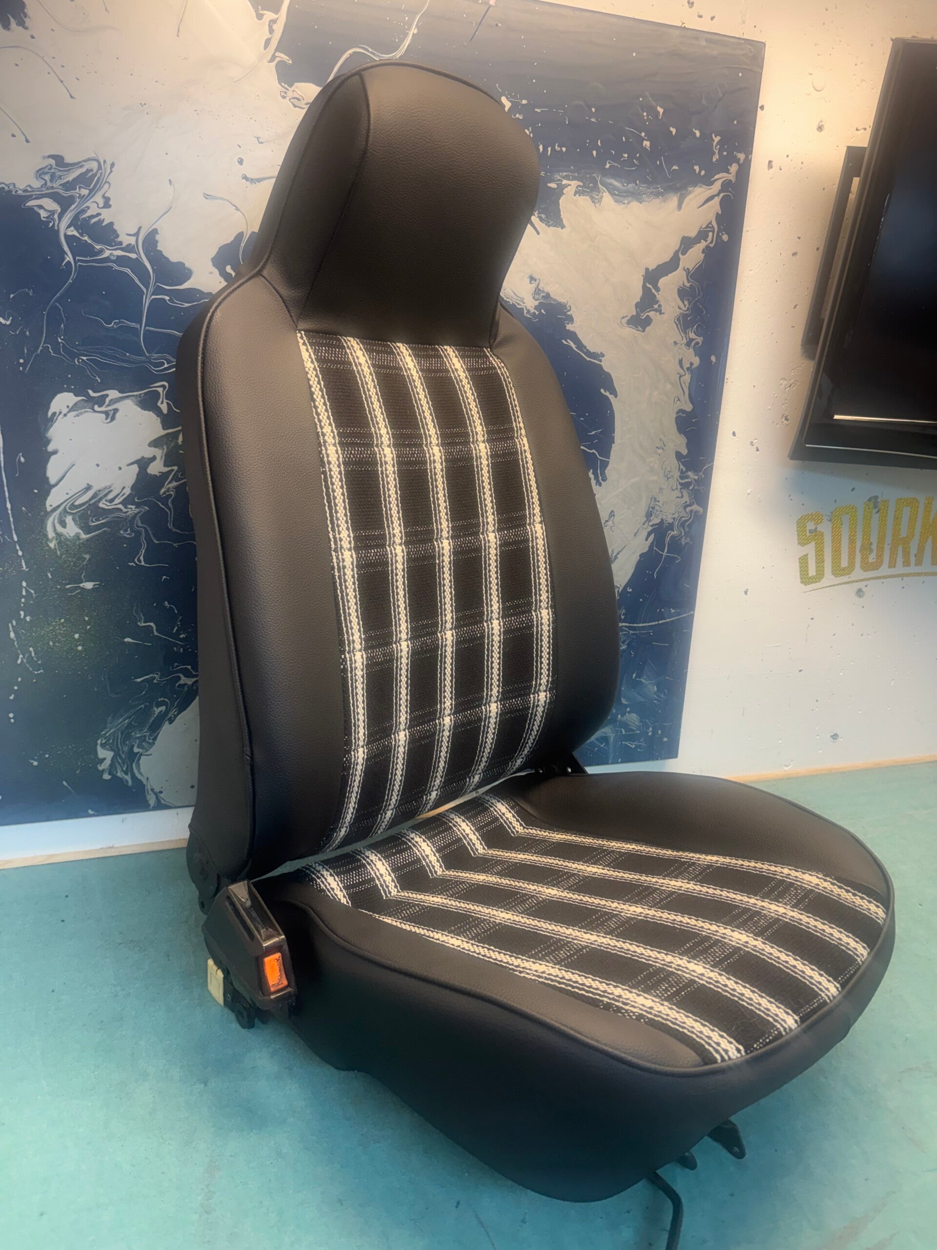 Unsere maßgeschneiderte Sitzbezüge für die Porsche Recaro Klappschalensitze bringen den ikonischen Charakter vergangener Porsche Modelle zurück. Besonders beliebt: der zeitlose Pepita-Stoff in Schwarz-Weiß - ein Muster, das Sportlichkeit, Eleganz und Tradition perfekt vereint.