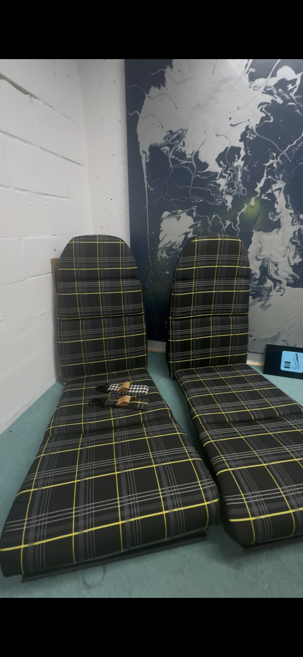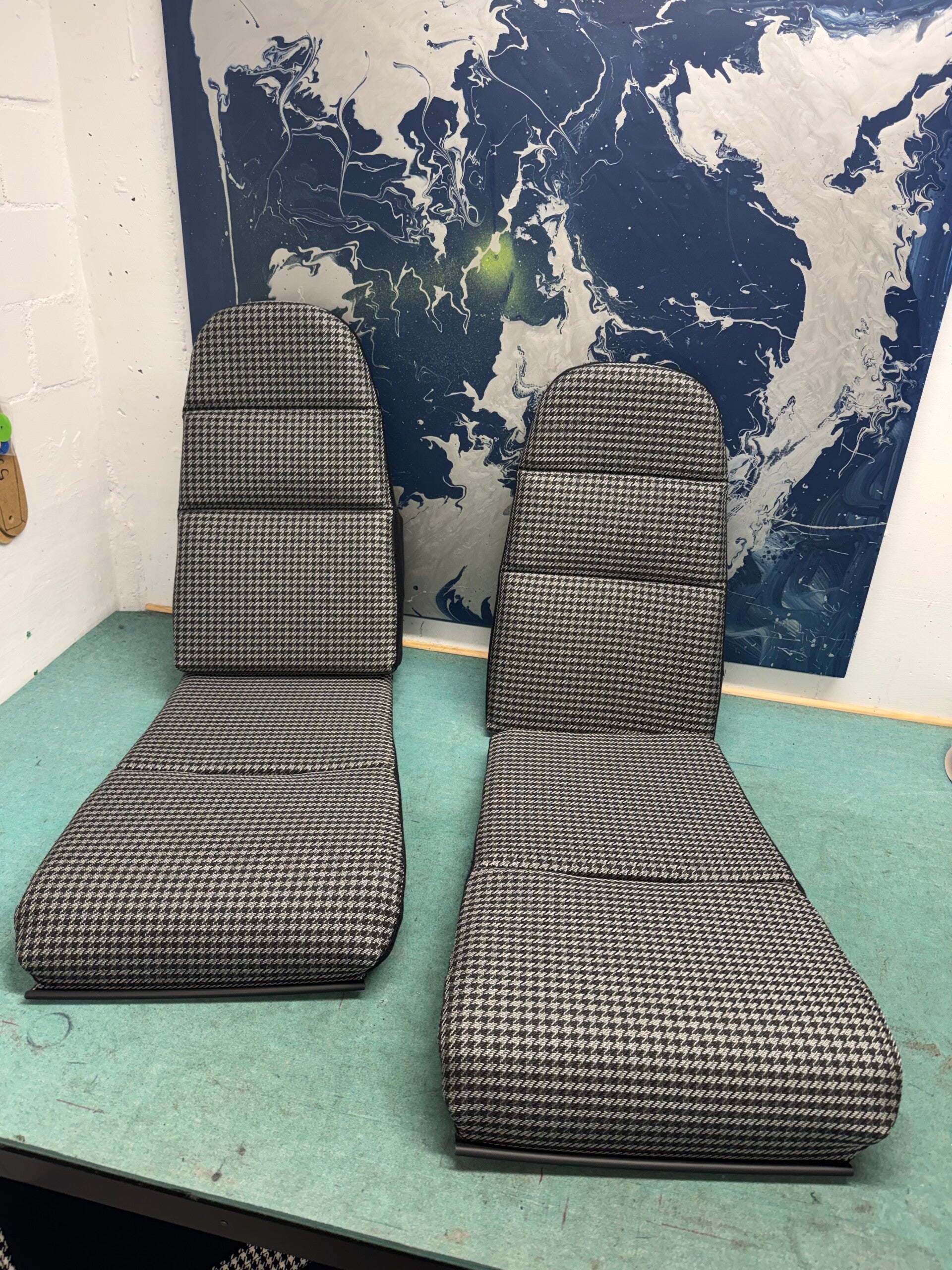 Porsche Vollschalensitz / Carbonschalensitz Bezüge für die RECARO Sportklappsitze für zwei Sitze. Die Überzüge sind neu von uns hergestellt. Plug & Play